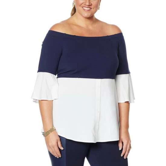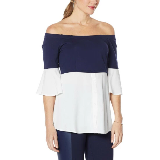Colleen Lopez Off-the-Shoulder Colorblock Top