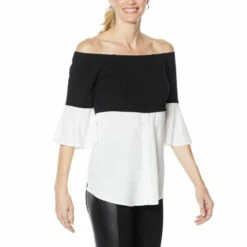Get ready to style out when wearing thisstunning colorblock top. The off-the-shoulder necklineprovidesstylingoptions that’ll keep you on trend wherever life takes you.