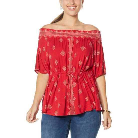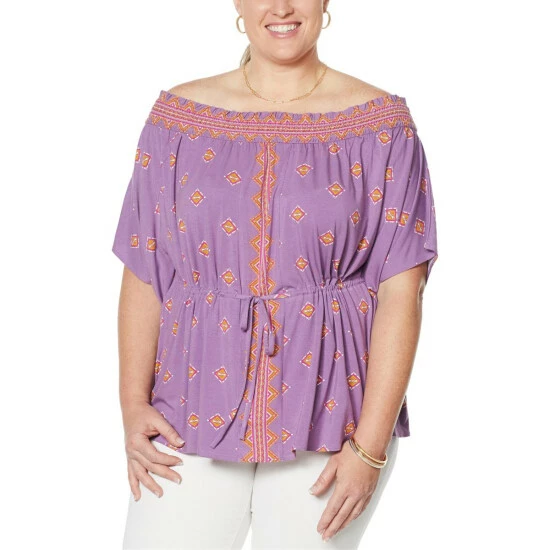 Colleen Lopez Off-the-Shoulder Smocked Neck Printed Top