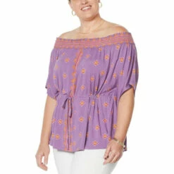 | Neckline: | Smocked, elasticized off-the-shoulder |