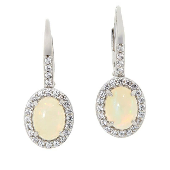 Colleen Lopez Opal and White Zircon Sterling Silver Leverback Earrings