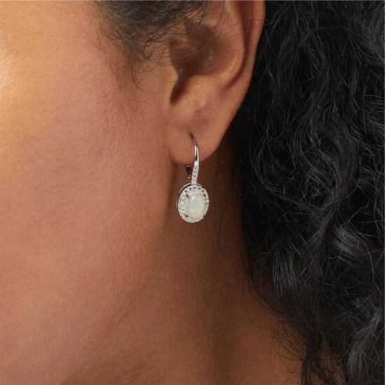Framed by sparkling zircon, these sterling silver and opal earrings bring ethereal elegance to any ensemble.