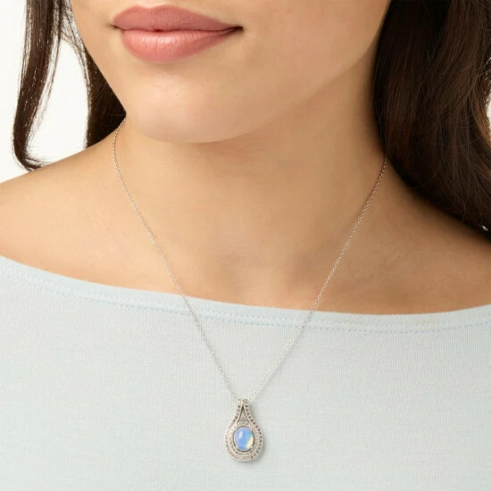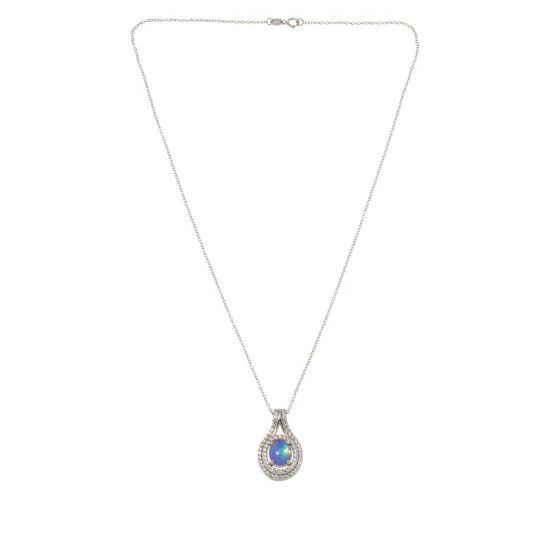 Colleen Lopez Opal and White Zircon Sterling Silver Pendant with Chain