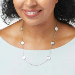 This flowing necklace features opaque gemstone discs along the chain for a chic, pairs-with-everything look.