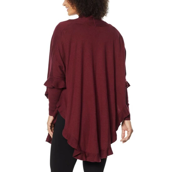 Colleen Lopez Open Front Ruffle Poncho Sweater
