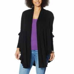Lightweight, frilly and fashionable, this ruffle poncho sweateradds fun to your wardrobe.Layer it over any ensemble for added warmth and stunning style.