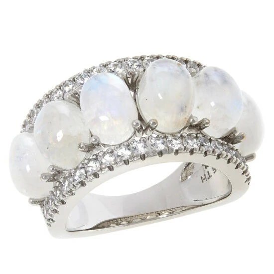 Colleen Lopez Oval Gemstone and White Zircon Band Ring