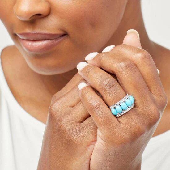Look fabulous at every angle with this gorgeous ring. The half-band design offers a bold gemstone presence that’s still comfy to wear.