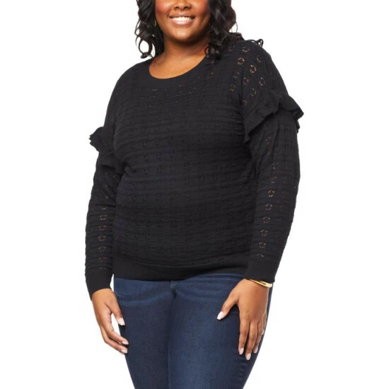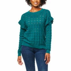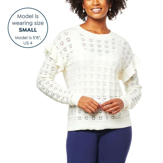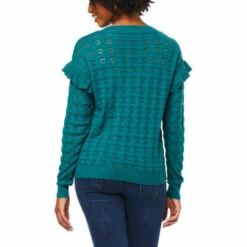 Colleen Lopez Pointelle Sweater with Ruffle Detail