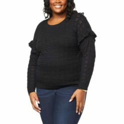A little ruffle goes a long way. Made with eye-catching ruffleddetailthispullover sweater makes a high-fashion edge for cool-weather chic.