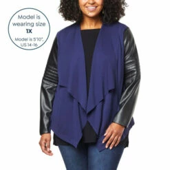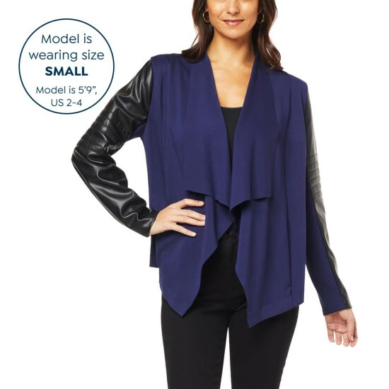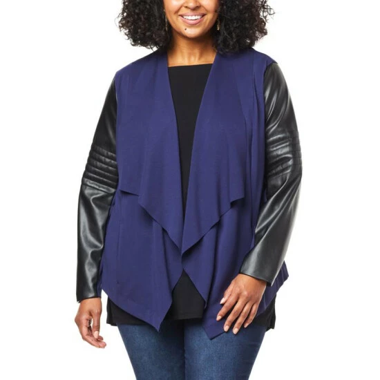 Deals ๐Ÿ˜€ Colleen Lopez Collection Colleen Lopez Ponte Knit Drape-Front Jacket With Faux Leather Trim Black ๐Ÿคฉ