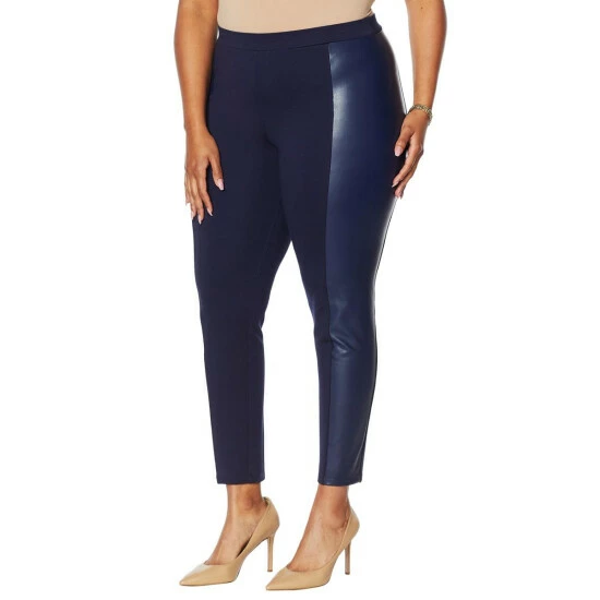 Colleen Lopez Ponte Slim Pant with Faux Leather Panels
