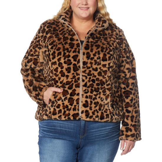 Colleen Lopez Print Faux Fur Bomber Jacket