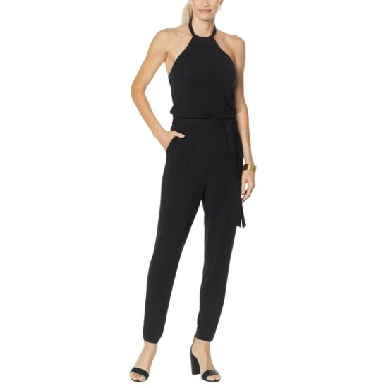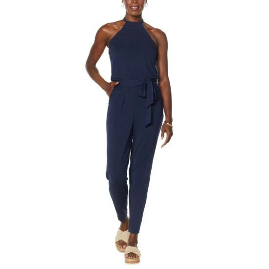 Make a lasting impression wherever you go wearing thissleevelesshalterjumpsuit. It’s a flattering one-and-done, classic look that’s perfect for any occasion.