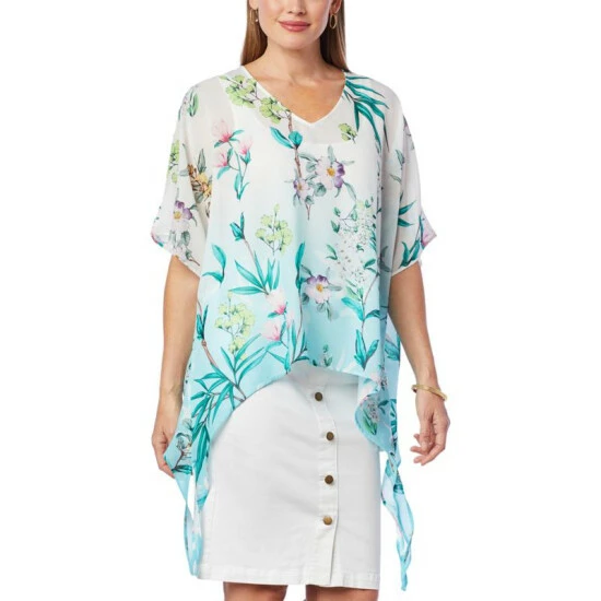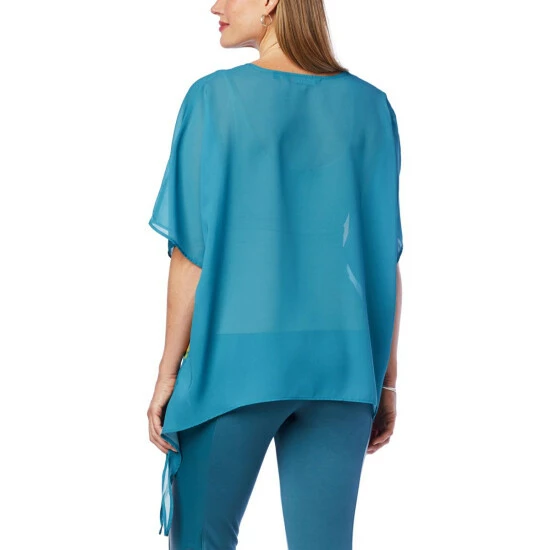 Colleen Lopez Printed Poncho Top with Sharkbite Hem