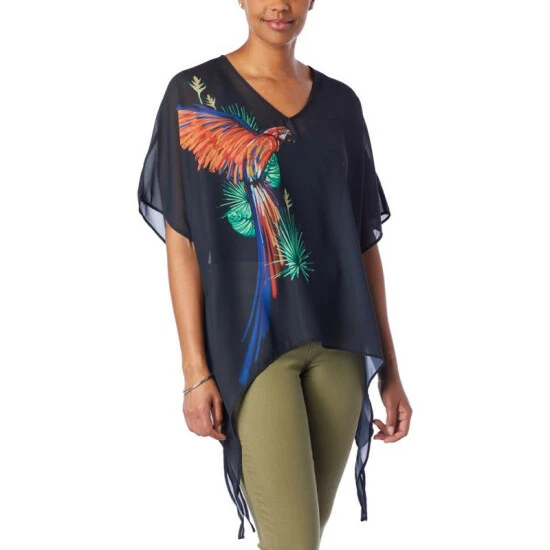 The perfect topper for elegant year-round style, this printed poncho top complements your favorite bottoms in a fun, fashionable way.