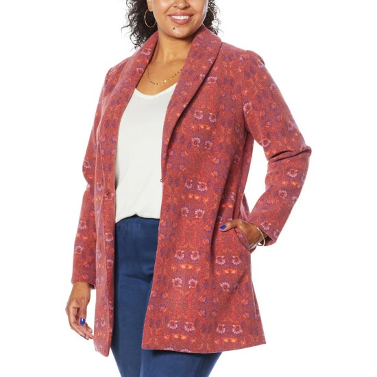 Look hot even when it’s notwearing this beautiful printedcoat from Colleen Lopez. It’s a fashionable way to keep the chill at bay.