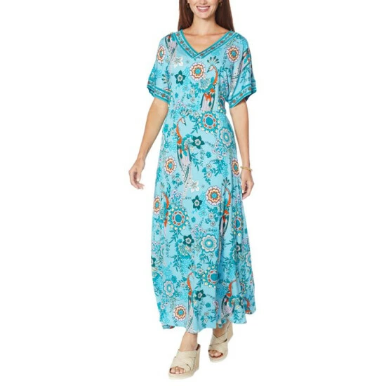 The stunning boho floralsandfigure-flattering silhouette ofthis classic V-neck maxi dress solvesyour what-to-wear dilemma from workday to weekend.