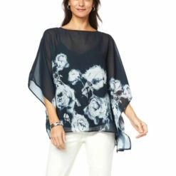Comfort and couture. This loose-fitting poncho-style top pairs perfectly with skinny jeans and leggings alike.