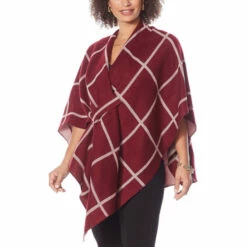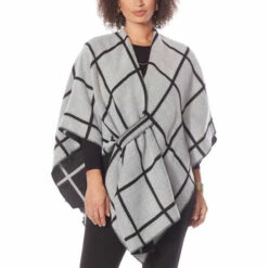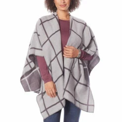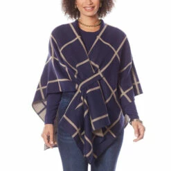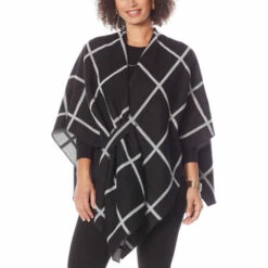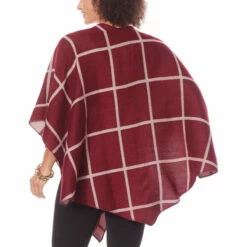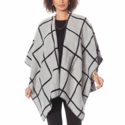Upgrade any outfit in an instant by adding this sophisticated knit shawl topper, featuring a grid design andfront band closure for a uniquely stylishly look. It’s cozy, chic, unique and reversible so it can really match anything in your wardrobe!