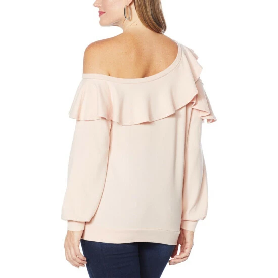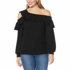 Feminine, fashionable and chic, this ruffle sweatshirt is fun and unique.