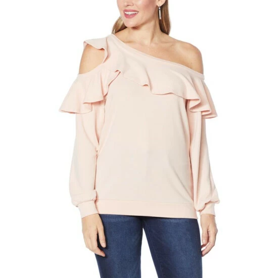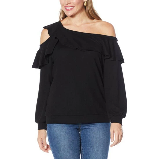 Colleen Lopez Ruffle Sweatshirt with Cutout Detail