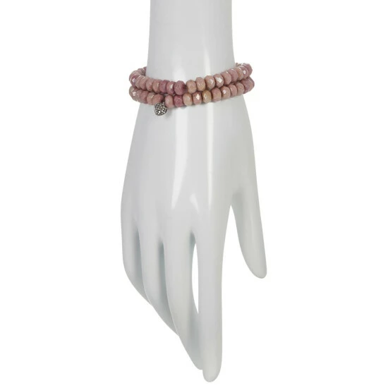 Make a chic stack with this pair of stretchy gemstone bead bracelets. One features a diamond-accented charm for a fun, fashion-forward look.