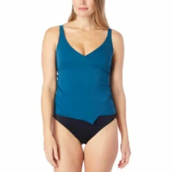 | Design Features: | Side shirring detail; non-roll swim elastic; zigzag stitching; top: uneven hemline |