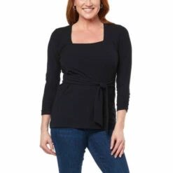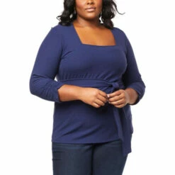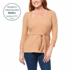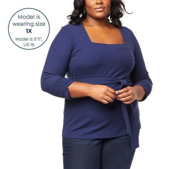 Add elegant flair to your wardrobe when pulling on this cozy-chic square neck top.