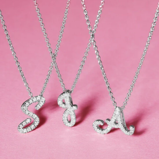 Express yourself with this chic diamond initial pendant suspended on a sterling silver chain.