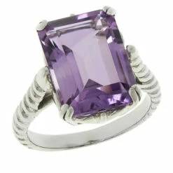 This eye-catching ring wows with your choice of an emerald-cut gemstone solitaire, nestled within a frame of delicate sterling silver.