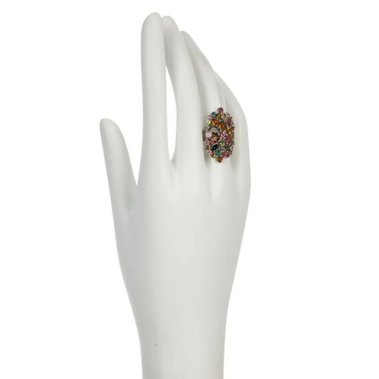 A cluster of sparkling gemstones bring undeniable glamour to this sterling silver ring.