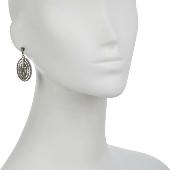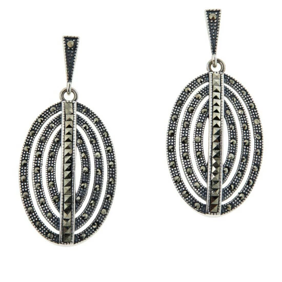 Colleen Lopez Sterling Silver Marcasite Oval Drop Earrings