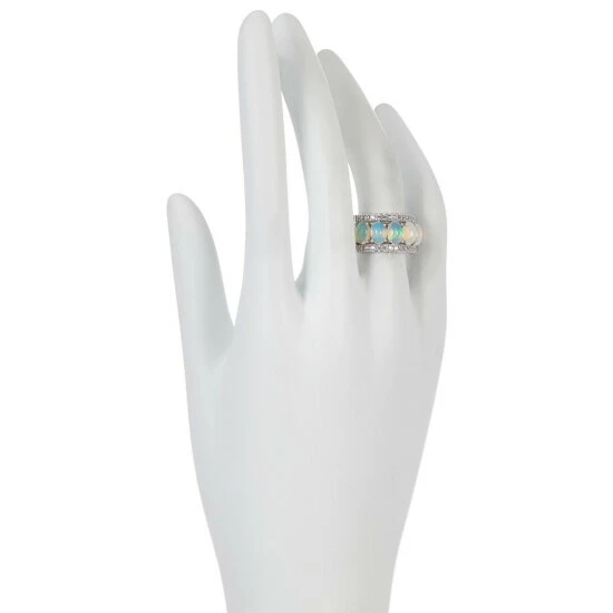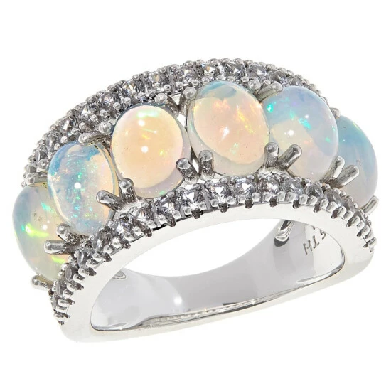 Colleen Lopez Sterling Silver Opal and White Zircon Cocktail Ring
