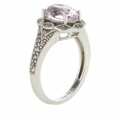 This gorgeous, oval-cut purple kunzite is set in ornate zircon frame for a standout design you’re sure to love.