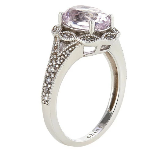 Colleen Lopez Sterling Silver Oval Kunzite and White Zircon Ring