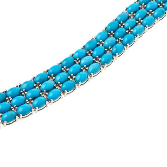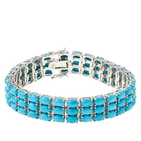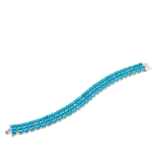 Colleen Lopez Sterling Silver Oval Turquoise 3-Row Tennis Bracelet