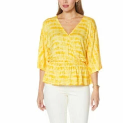 | Fabrication: | Striped tie dye rayon stretch knit |