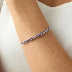 Bring elegance to your everyday look with this paperclip link bracelet lined with sparkling tanzanite.