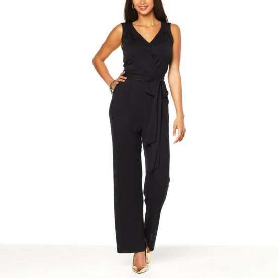 Colleen Lopez Tie Belt Sleeveless Knit Jumpsuit
