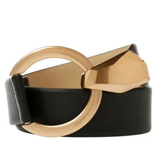 Even the simplest accessories can greatly transform any outfit. With its unique ring and faceted hook slide back, this belt is a show stopper.